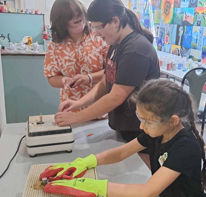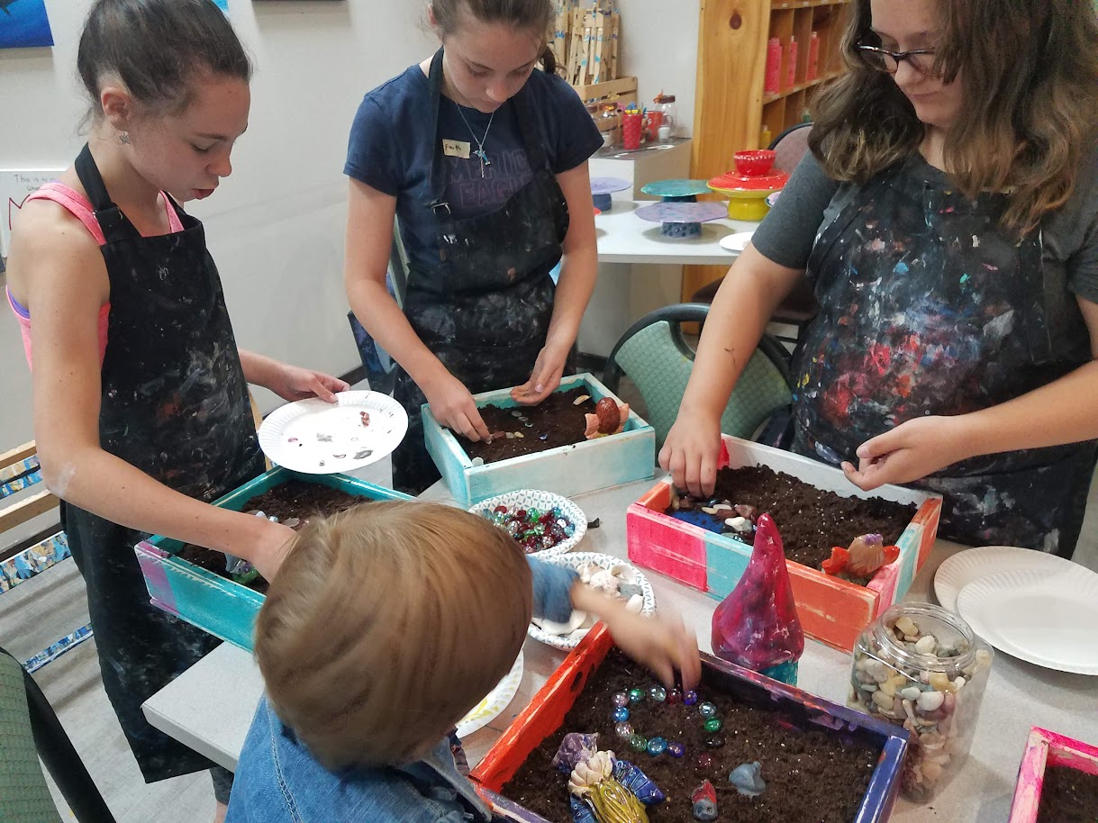 Each Art Adventure includes guided projects that rotate throughout the week depending on the session. Kids might work with canvas, clay, glass, and mixed materials as they try different ways to create in the studio.